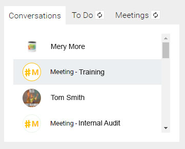Below, that Tab Section, another section showing recent Conversations, any ToDo items, and any Meetings Pending.